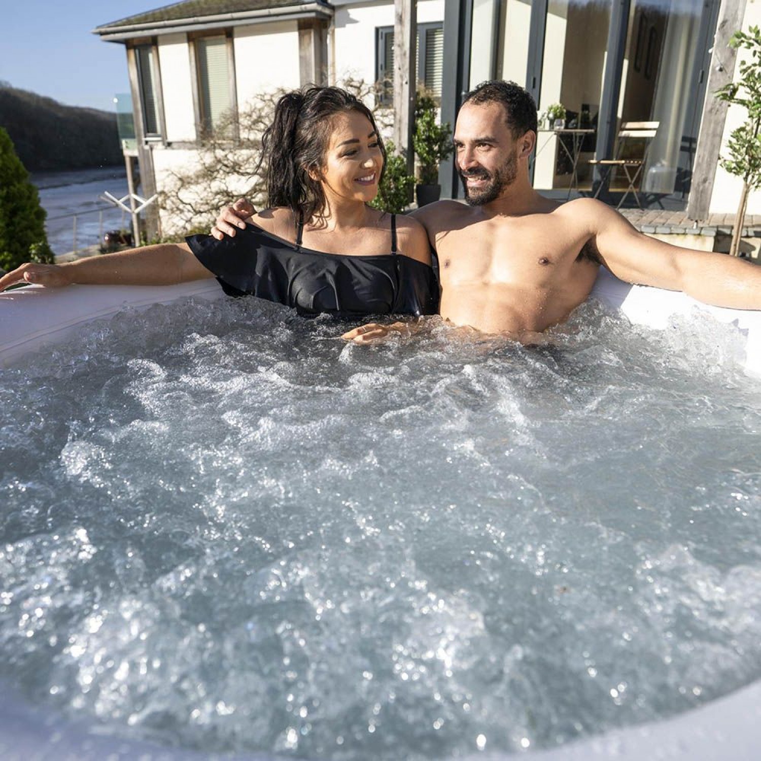 Lay-Z-Spa Bali AirJet™ este un răsfăț elegant în grădina sau pe terasa ta.Acest model de jacuzzi se instalaeaza printr-o singură apăsare de buton, se încălzește prin comandă digitală, și, - desigur- este portabil. Poți achiziționa setul complet, totul va fi gata pentru utilizare. Culoarea gri deschis oferă eleganță și stil. Carcasa este iluminată cu o banda de LED RGB integrată cu telecomdandă.