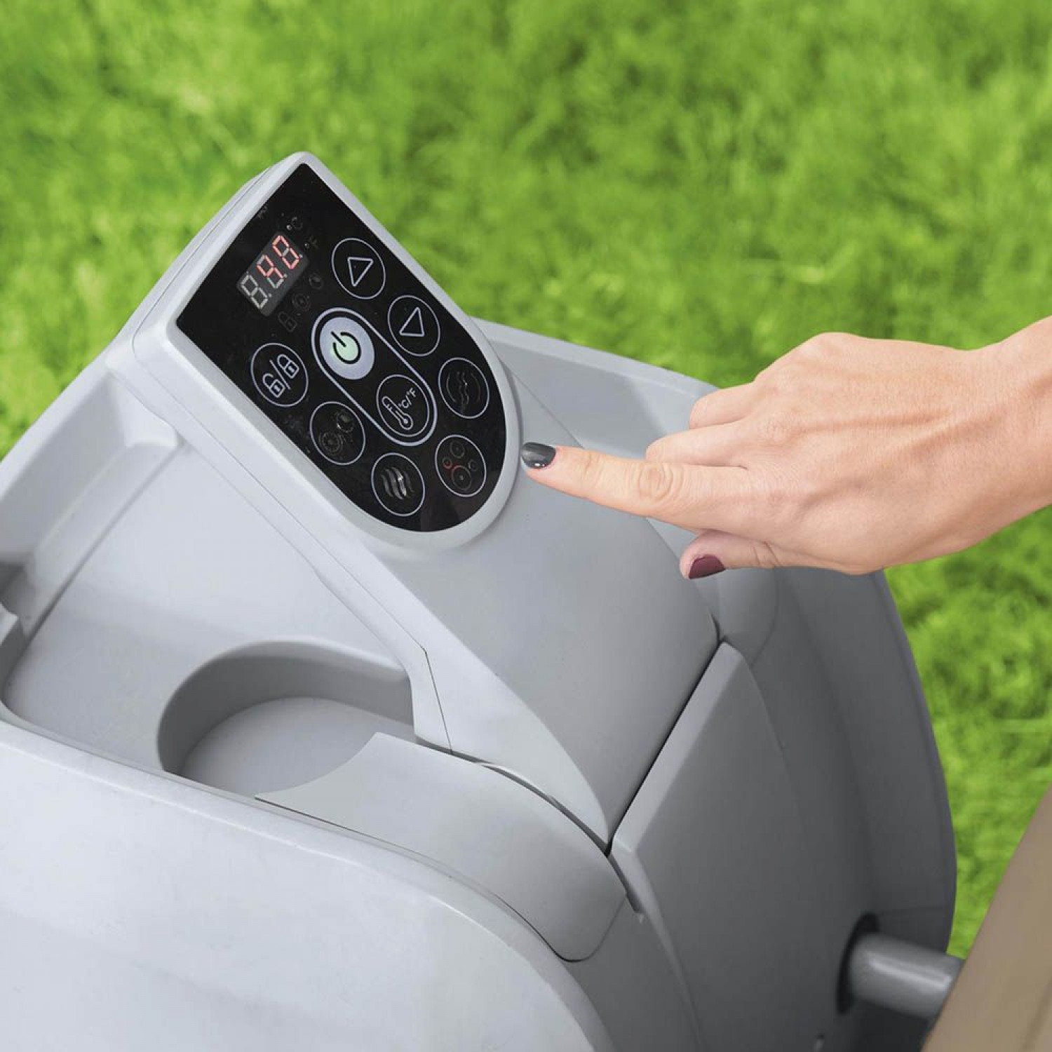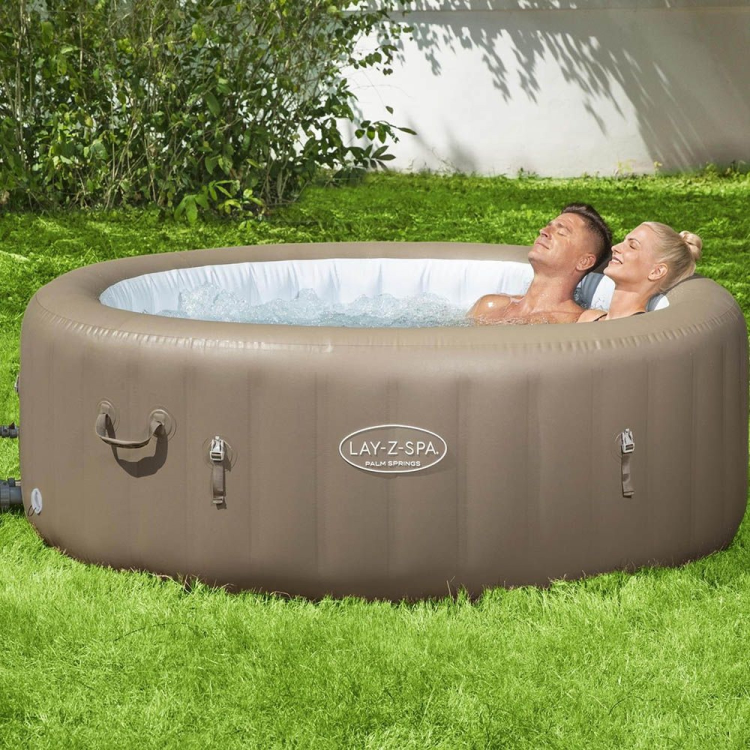 Lay-Z-Spa Palm Sping AirJet™ este un răsfăț elegant în grădina sau pe terasa ta.Acest model de jacuzzi se instalaează printr-o singură apăsare de buton, se încălzește prin comandă digitală, și, - desigur- este portabil. Poți achiziționa setul complet, totul va fi gata pentru utilizare. Culoarea cafenie și suprafața printată de textura pielii oferă eleganță și stil.